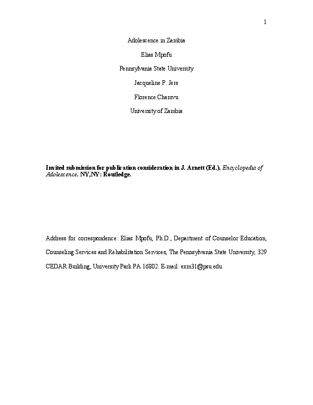 Doc Adolescence In Zambia Jacqueline Jere Folotiya Academia Edu